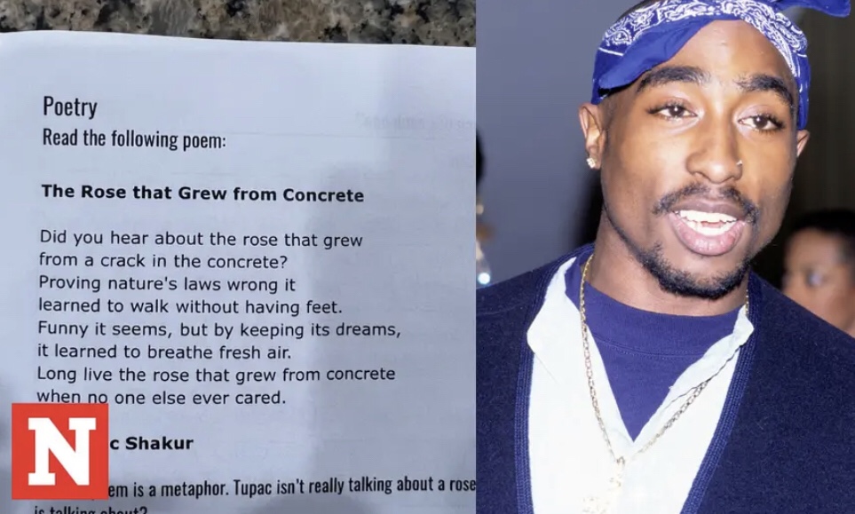 A dad expressed his surprise and excitement after realizing that his son , in class 7, was being taught Tupac poem The Rose that Grew from Concrete and analyze the metaphor behind the late rapper’s words!