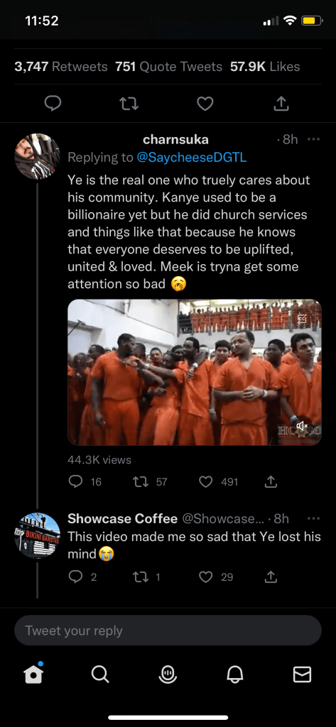 After kanye laughed in tears mocking meek mill for giving him an advice , meek mill responded as mentioned in the photo above ⬆️