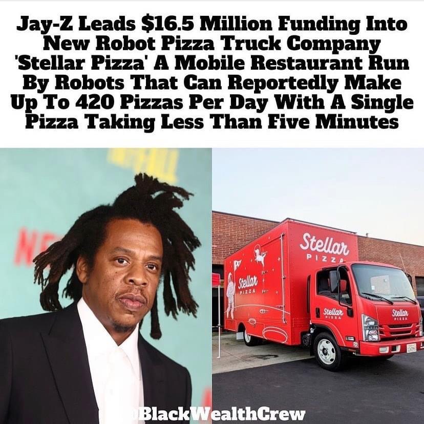 Jay Z is invested in a company where robots can make up to 420 pizzas a day per truck and deliver the pizza’s hot and fresh to your door.